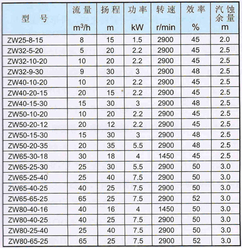ZW系列无堵塞自吸式排污泵集自吸和无堵塞功能,既可像一般清水自吸泵一样不需底阀,不需引灌水,又可抽吸含有颗粒、长纤维的介质。自吸能力强,使用方便,安装简单易行,性能稳定。