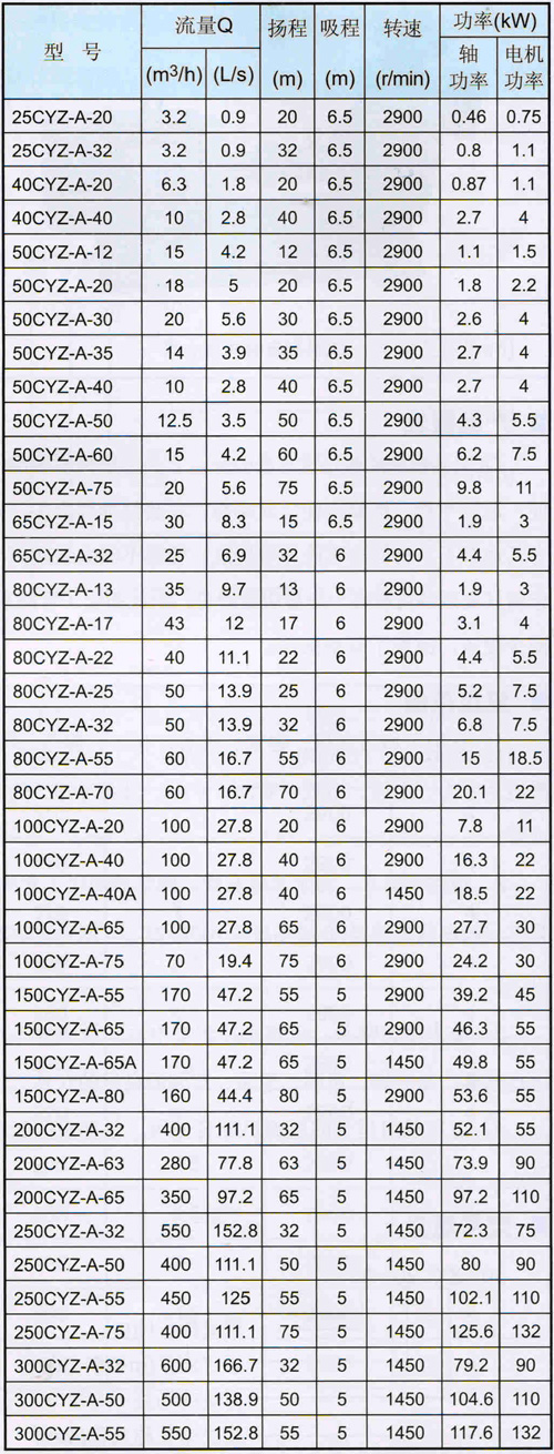 CYZ-A系列自吸式离心油泵适用于石油行业、陆地油库、油罐车的理想产品,并适用于作船用油泵、舱底泵、消防泵和压载泵及设备冷却循环等,分别输送汽油、煤油、柴油等石油产品以及类似于海水、清水的介质,介质温度-20摄氏度-80摄氏度。